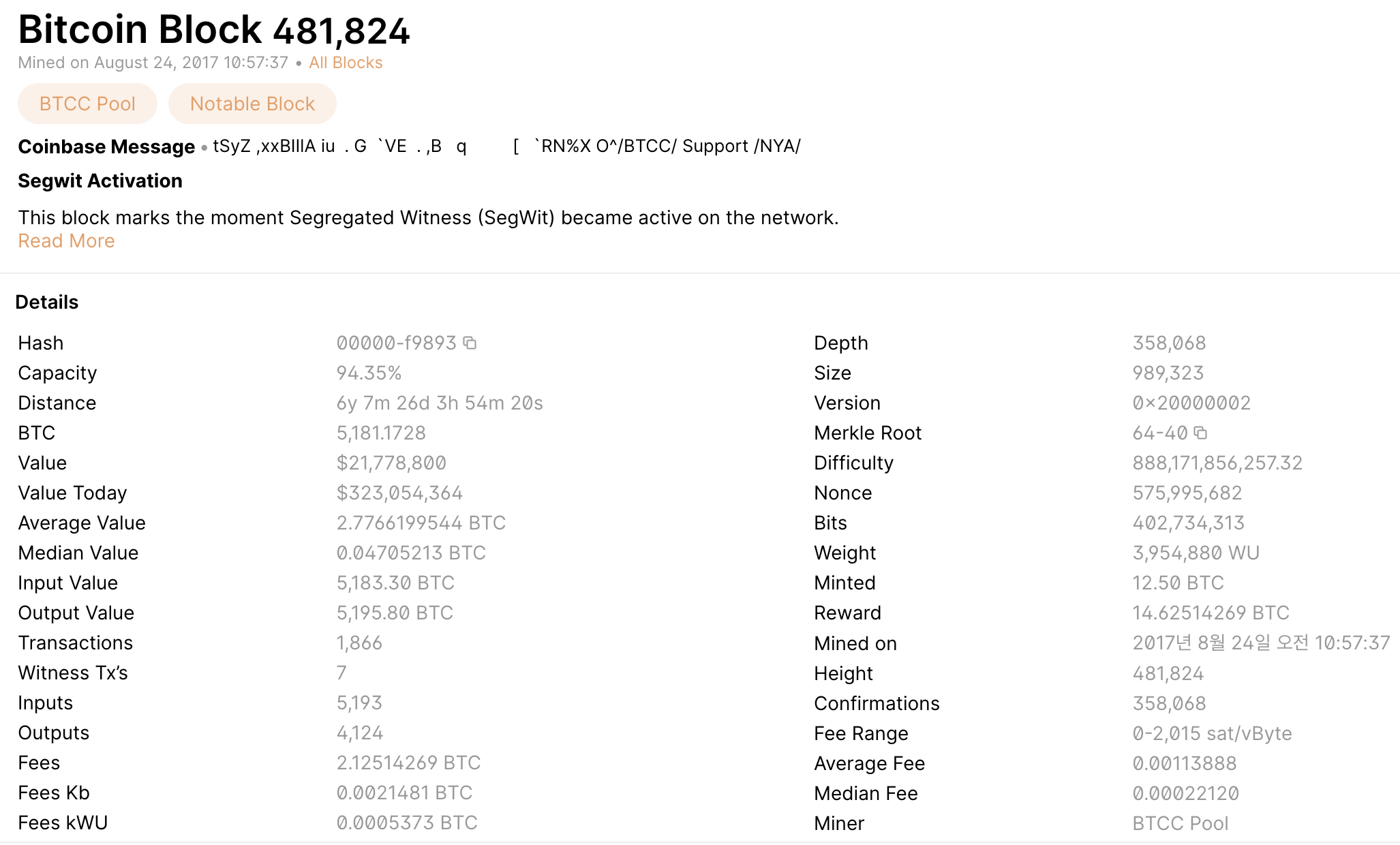 - 95% rule: 생성되는 1000개의 블록 중 950개가 version 2 이상이라면, 유효하지 않은 버전 1은 "앞으로" 모두 거절합니다.